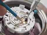 拆解机芯后,各组件以特别配方的溶液进行超声波清洁。