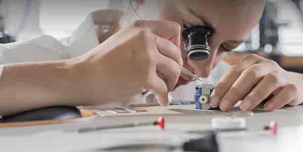 钟表修复师均远赴瑞士接受培训,或在国内经过瑞士严格标准化培训,技艺精湛,精通拆卸、检测、评估、宝石镶嵌、调校、装置优化、抛光、组装以及质量监控各项程序。
